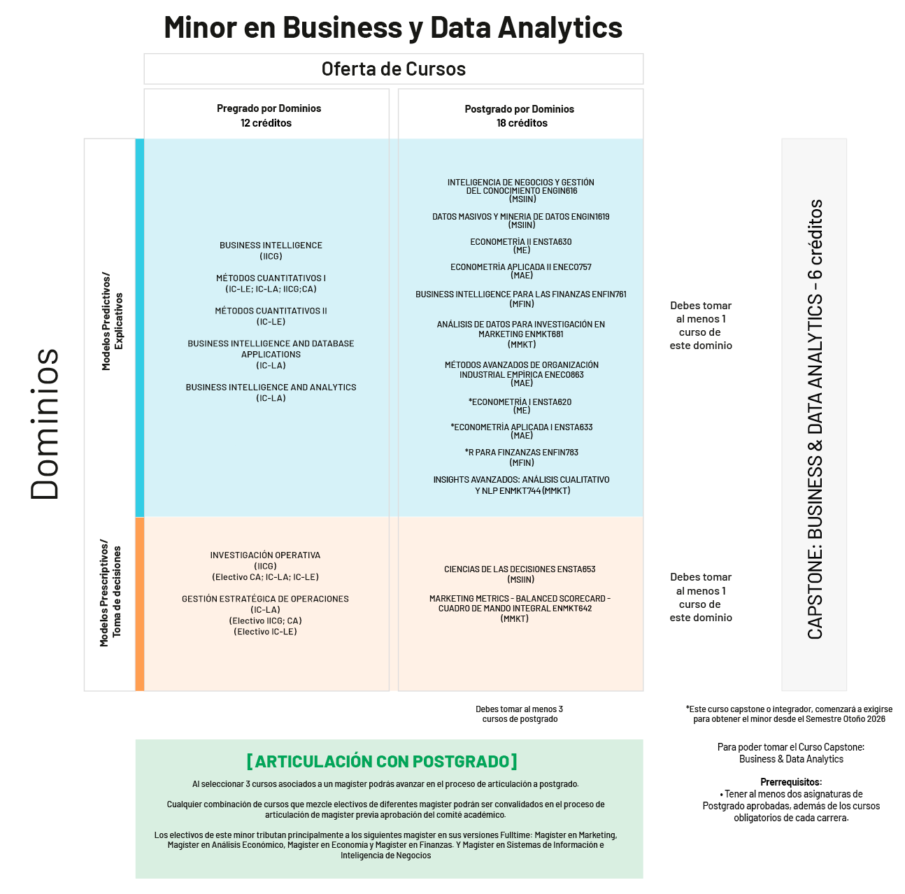 – Los Minors consideran 5 cursos: Hasta 2 de pregrado y al menos 3 de postgrado.