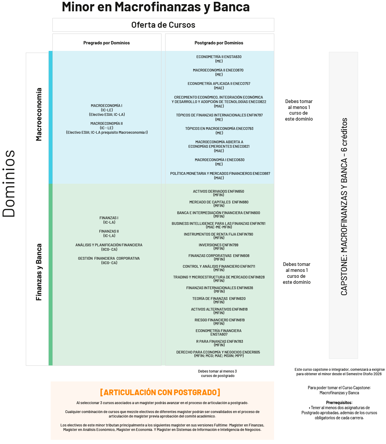– Los Minors consideran 5 cursos: Hasta 2 de pregrado y al menos 3 de postgrado.